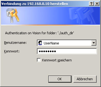 Manchmal ist es notwendig auf einen Web-Server vertrauliche Dokumente abzulegen, auf die nur bestimmte Benutzer bzw. Benutzergruppen zugreifen sollen. Reicht die Beschränkung auf Rechner oder Rechnergruppen nicht aus, so sollte man vom Benutzer eine Authentifizierung anfordern. Bei der Authentifizierung wird dem Benutzer ein Dialog angeboten, indem er seinen Benutzernamen und Kennwort eingeben muss: Das genaue Aussehen dieses Fensters hängt vom Client-Betriebssystem und dem verwendeten Browser ab. Erst nach richtiger Eingabe der Werte wird der Zugriff auf ein Verzeichnis gestattet., indem sich die vertraulichen Daten befinden. Zu erwähnen ist, dass diese Art der Authentifizierung auf ein Protokoll basiert, dass nur einen einfachen Schutz bietet und nicht für geschäftliche Transaktionen geeignet ist. In Verlauf dieser Seite werden zwei Methoden einer solchen Authentifizierung anhand von Beispielen vorgestellt. Dabei wird zunächst die Authentifizierung in die Apache-Konfigurationsdateien eingebaut. Weiterhin wird die Authentifizierung mittels so genannter .htaccess-Dateien vorgestellt. Authentifizierungs-TypenUnter Apache finden zwei Authentifizierungs-Typen Anwendung, das sind die Typen 'Basic' und 'Digest'. Beim Typ 'Basic' werden die Daten zur Authentifizierung in Klarschrift übertragen (base64-codiert), beim Type 'Digest' hingegen findet eine verschlüsselte Übermittlung statt (MD5-verschlüsselt). Für den Type 'Basic' ist das Modul 'mod_auth_basic' bzw. für 'Digest' das Modul 'mod_auth_digest' zuständig. Unter Debian können die Module bequem mit dem Kommando: 'a2enmod' bzw. 'a2dismod' aktiviert/deaktiviert werden. Bei der Grundinstallation von Debian ist das Modul 'mod_auth_basic' bereits standardmäßig aktiviert, soll hingegen der Type 'Digest' genutzt werden, so ist das Modul zu laden. Hier der Beispiel-Aufruf zum Laden des Modules 'mod_auth_digest':