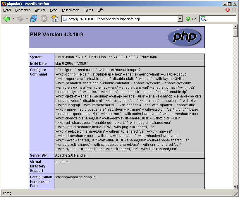 werden. Durch Aufruf von: 'http://<webserver>/phpinfo.php' sollte nun eine