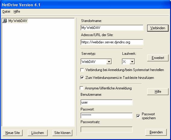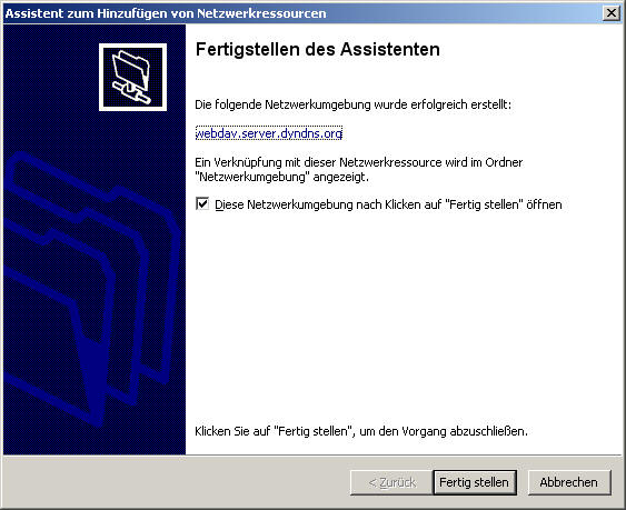 Mit 'Fertigstellen' sollte nun auf den 'WebDAV'-Bereich zugegriffen werden können. NetDrive von Novell Mit dem Programm 'NetDrive' von der Firma Novell können Verzeichnisse von