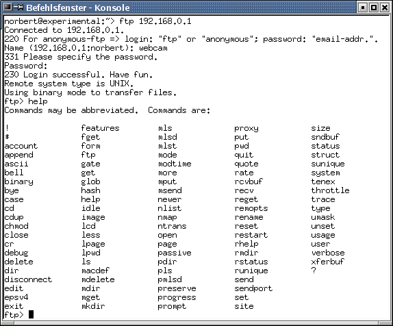 in der 'CMD'-Box aufgerufen werden. Wie auch der FTP-Client unter Linux verfügt der
