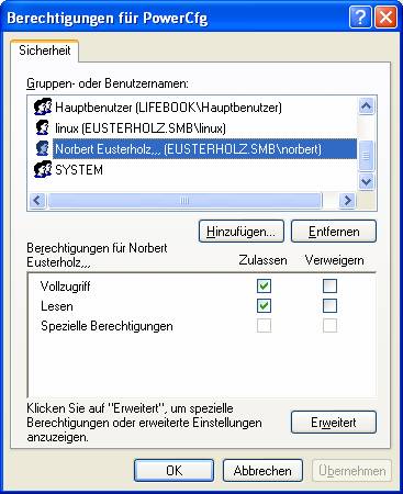 Dort können nun Benutzer oder Gruppen hinzugefügt werden; die